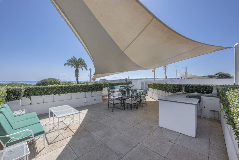 Outdoor & Terrace: • Large covered terrace with glass curtains, perfect for year-round use • Roof terrace with panoramic views: beach, Rock of Gibraltar, cork forest, and the Mediterranean Sea • Terrace kitchen, ideal for entertaining and gatherings