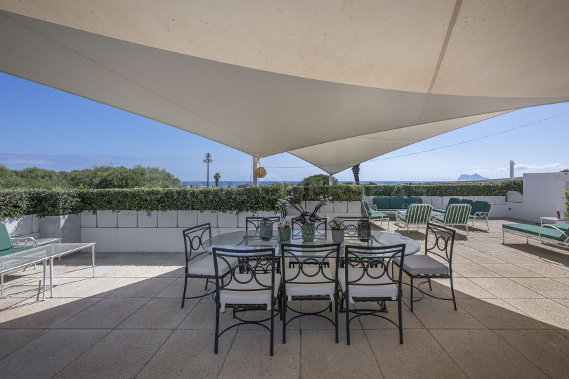 One of the very few frontline beach properties in Sotogrande, located in the prestigious gated “Bungalows” community, next to the Real Club de Golf de Sotogrande and just meters from the beach.